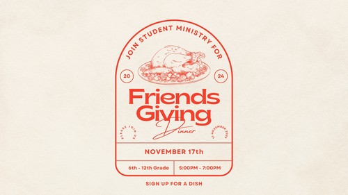 It’s time for food, fun, and friendship! Let’s gather around for a cozy evening filled with gratitude, laughter, and (of course) plenty of food. Come ready to celebrate the season and enjoy each other’s company. We will be meeting on Sunday evening, not Sunday afternoon, so be sure to check the time! Also, we would love for you to bring a dish to share. You can use the link below to register to bring something.