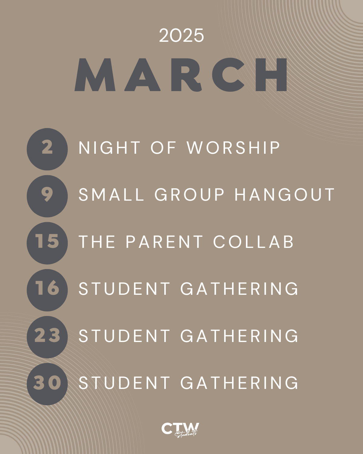 We realize emailing students information just isn't realistic. So, we're giving them the option for us to text them instead. If your student would like to join our text list, please have them text the word Students to 734-600-9036. If you would like to join our parent text list, please text the word Parent to 734-600-9036. Then, save this number in your contacts as CTW Students so you know it is in the future. This will be used to send announcements, like this news page, and make sure you are up to date on all things Student Ministry.